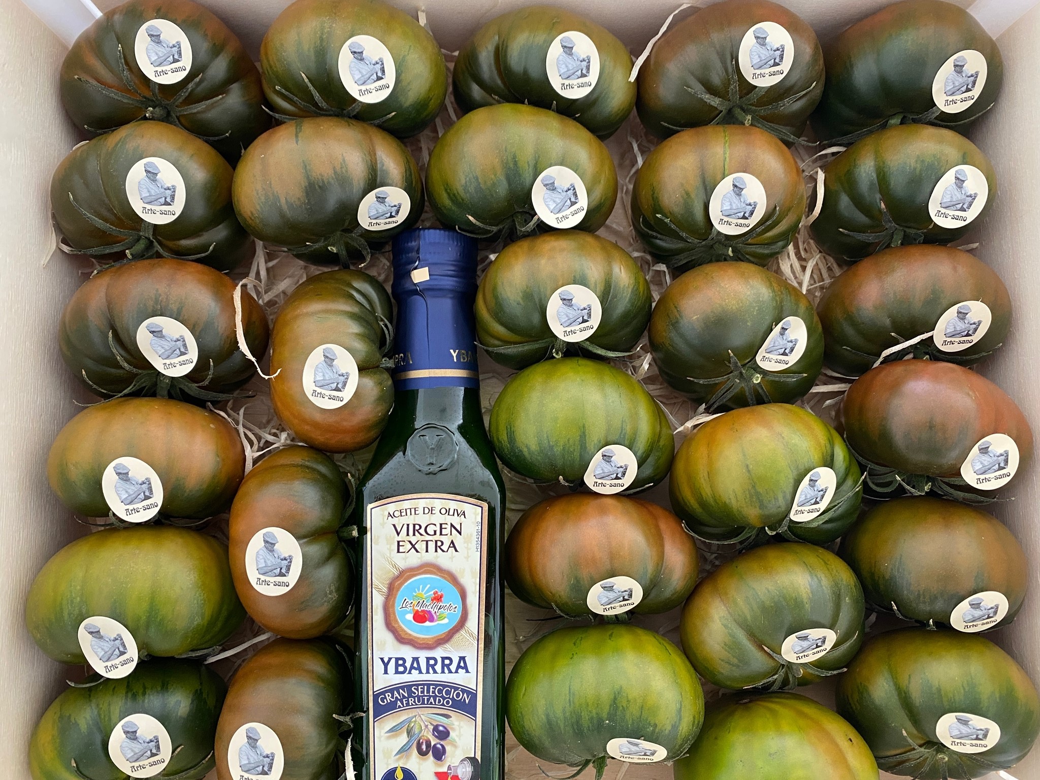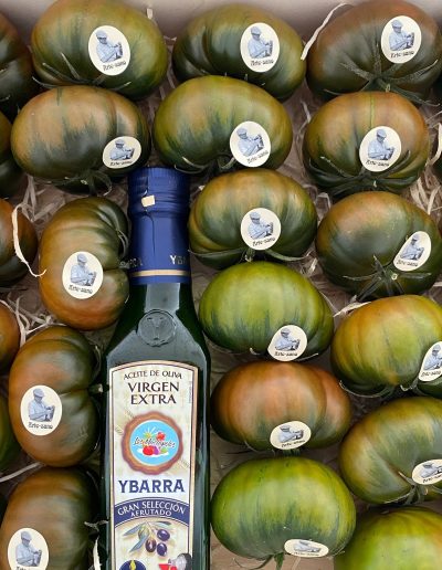 Si buscas un tomate de calidad, te presentamos la «CAJA RAF NEGRO», contiene 3 kilos de tomate Raf y una botellita de aceite de oliva.